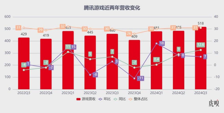 其他长青游戏方面,《火影忍者》手游于2024年5月DAU破千万后,Q3流水同比增长16%;《无畏契约》Q3季均DAU创下历史新高,成为腾讯国内流水和收入最高的端游。